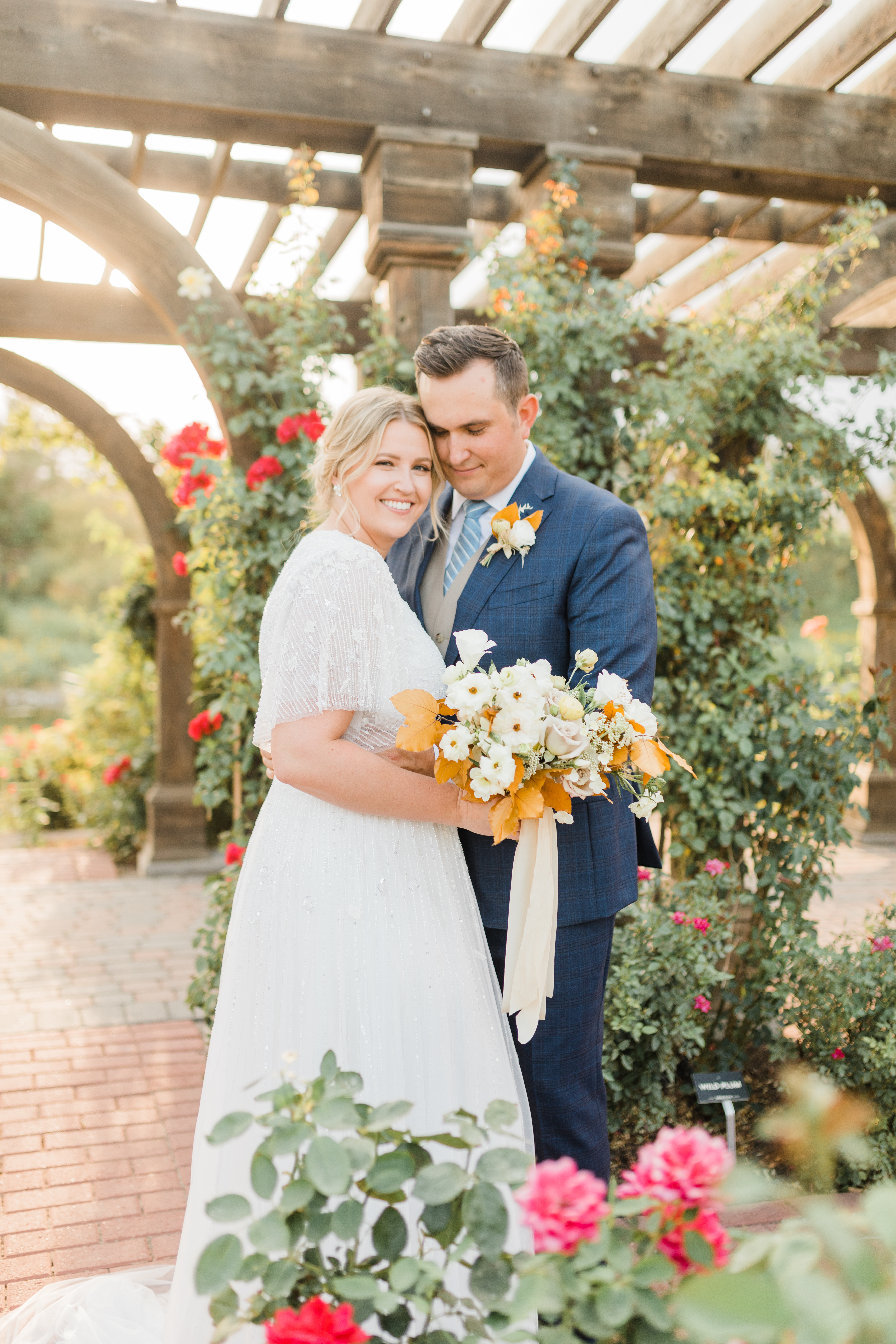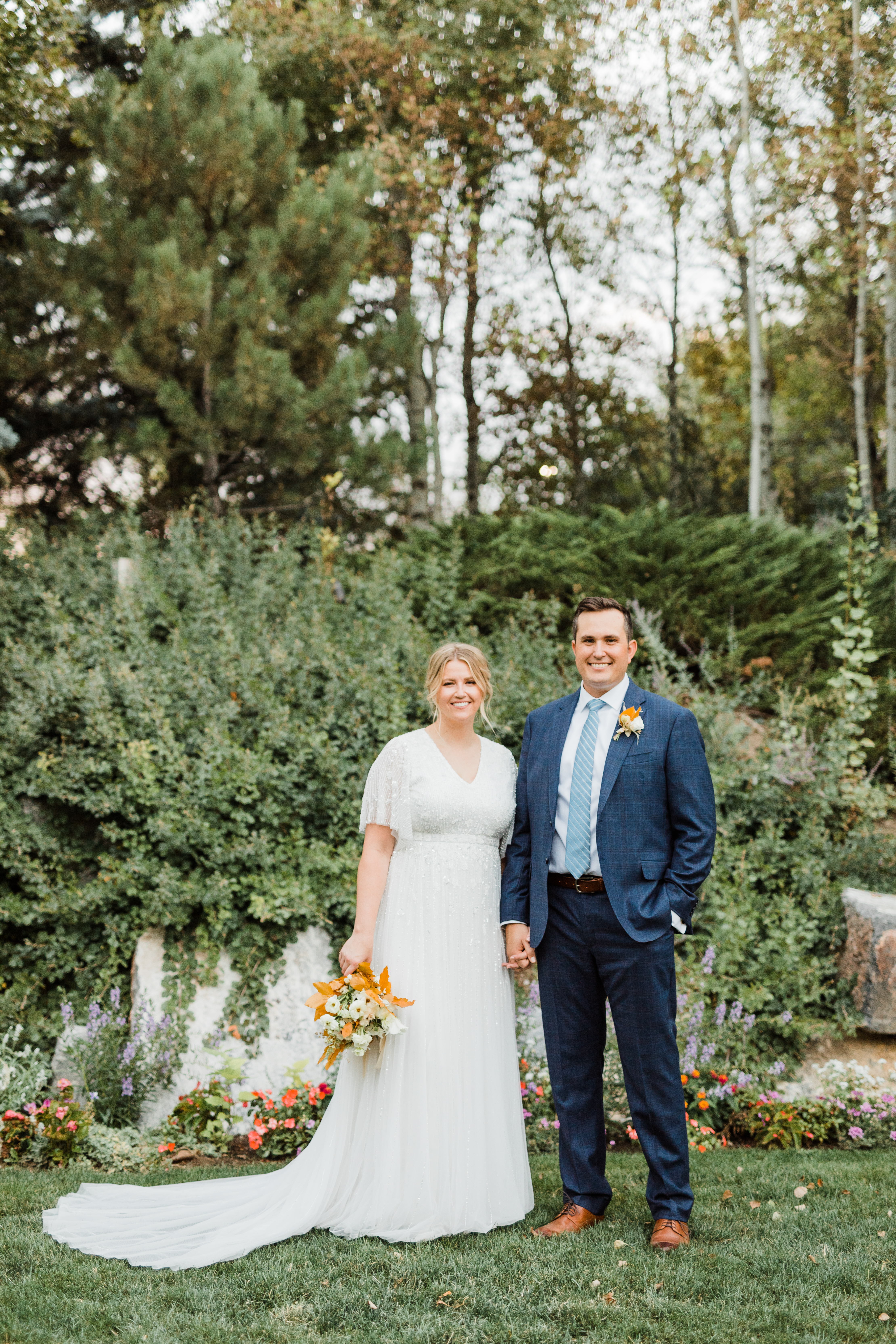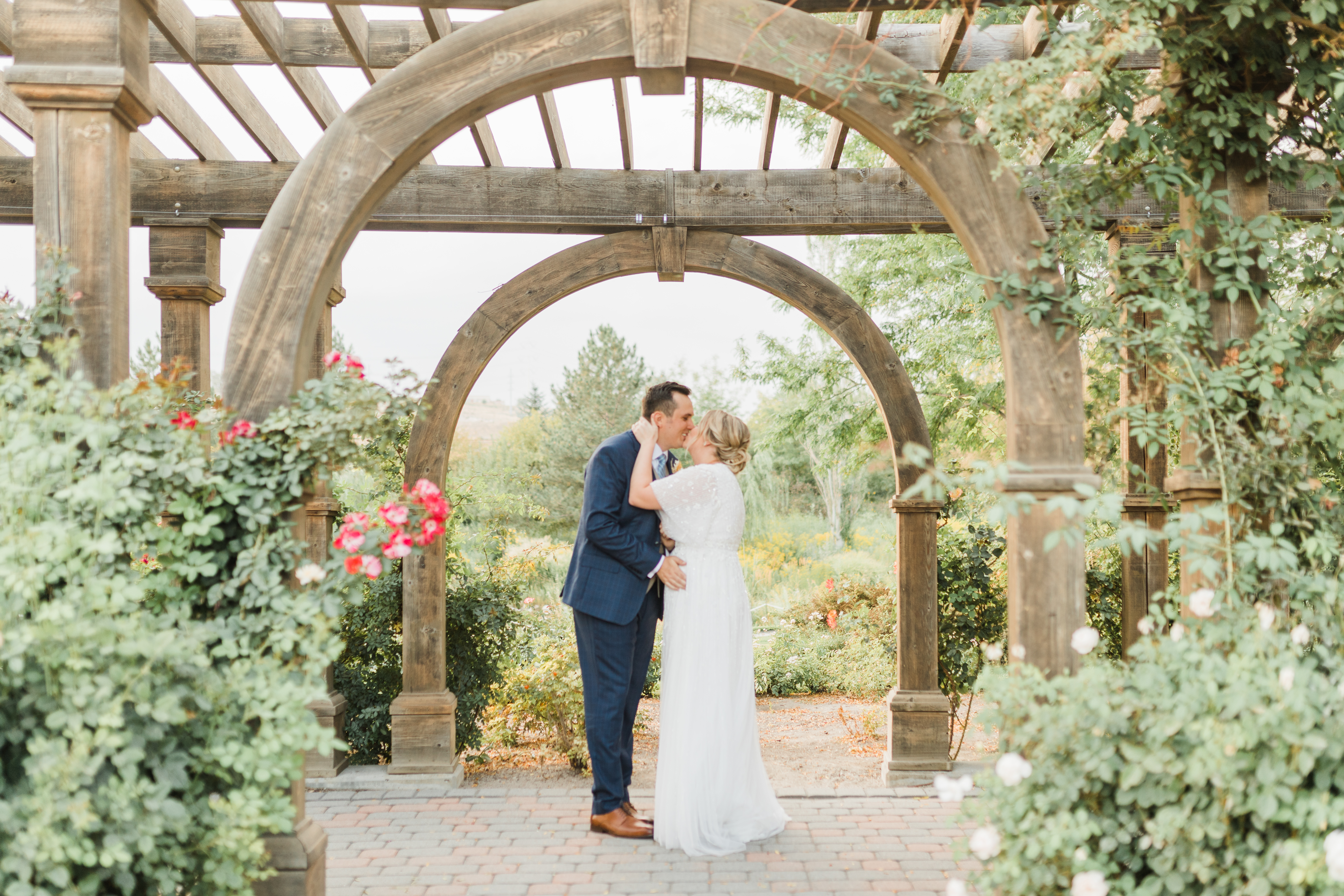 Since we didn’t get the wedding event, we were happy to still get photos taken of us in our wedding attire! Using the photographer we had originally booked for our wedding day, we had a little photoshoot at Thanksgiving Point in Utah.