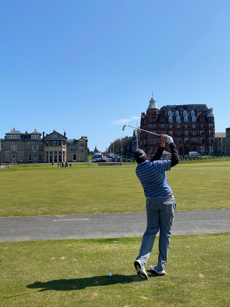 During our 3 days stay in St Andrews we went all out – we stayed at the Rusacks Hotel and Dylan was able to play one round at the Old Course and another round at Carnoustie links. Our luck also continued and we had perfect weather the whole time, something in itself is a miracle for the end of April so far north.