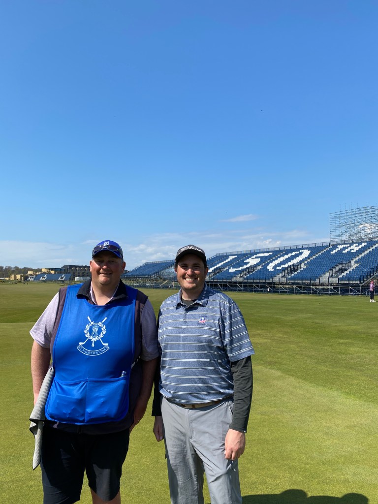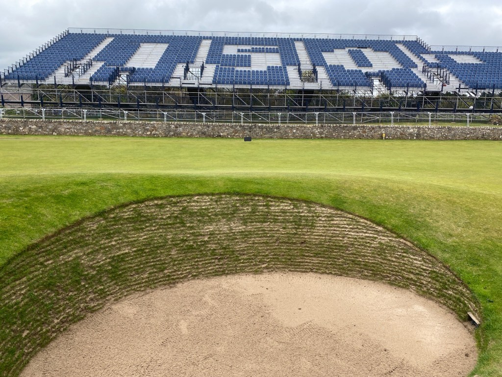 Golf at St Andrews is centralized at one main course – the Old Course, which was the first actual golf course built and designed. Since the 1400’s, more courses have been built in the surroundings, making a total of seven golf courses. The Old Course is the same course where the rules were defined, 18 holes for one round was decided, and every other part of the game was formed. It’s also the course where they played the 2022 British Open (and many other British Opens in the past), though it’s really just called “The Open.” That’s why you see the big “150th” in the grandstands, I was one of the last public rounds of golf before the course closed to prep!