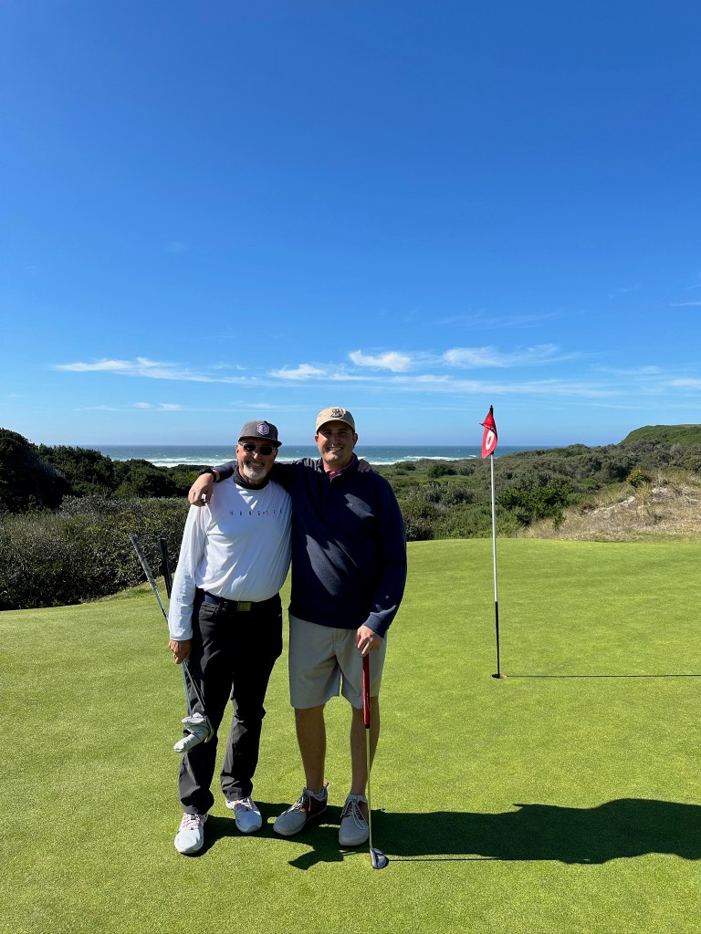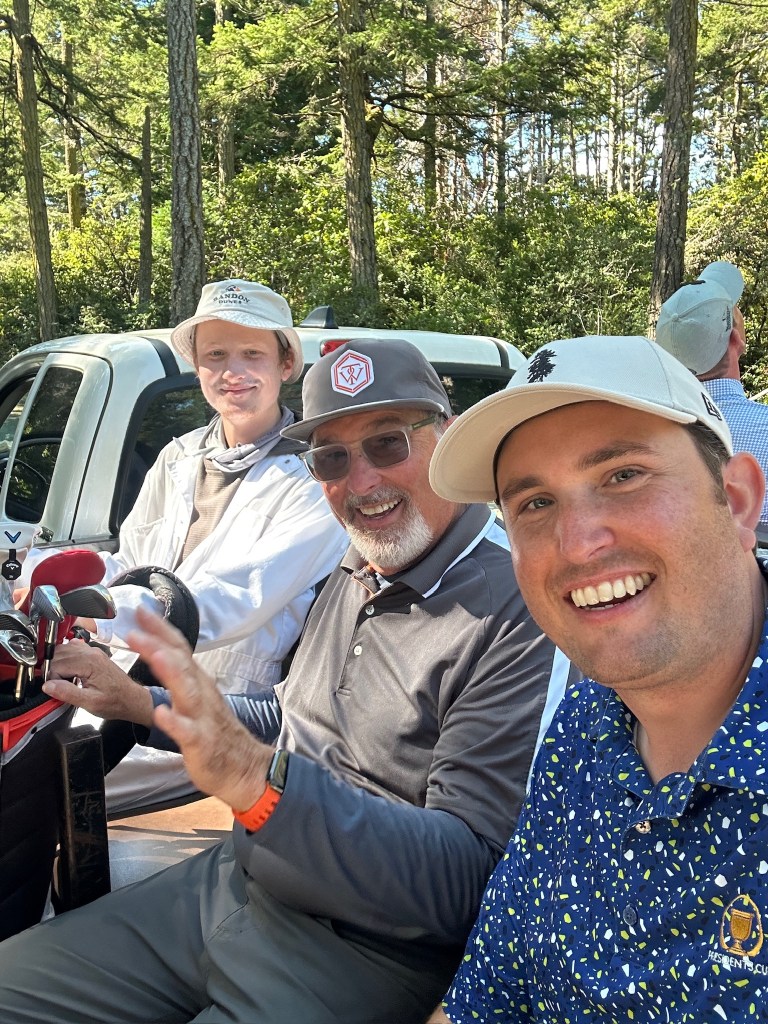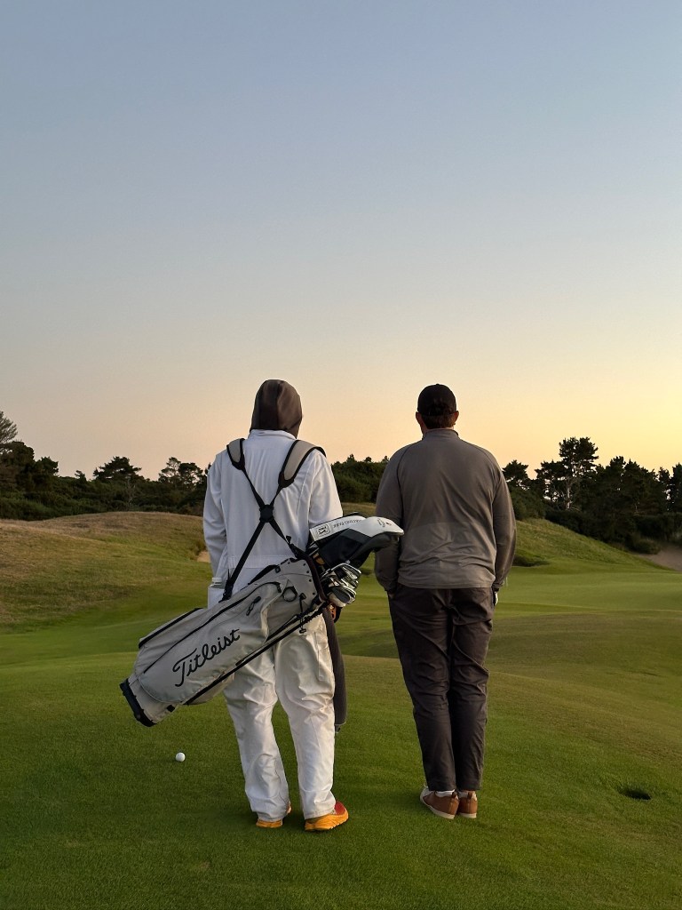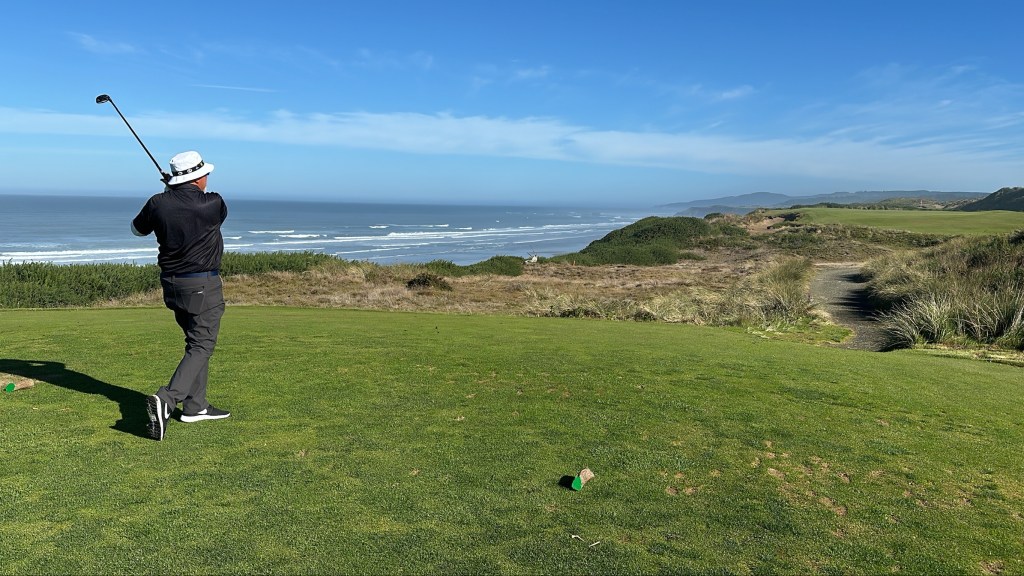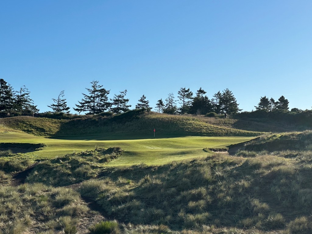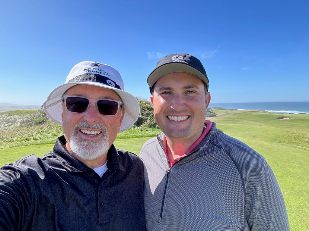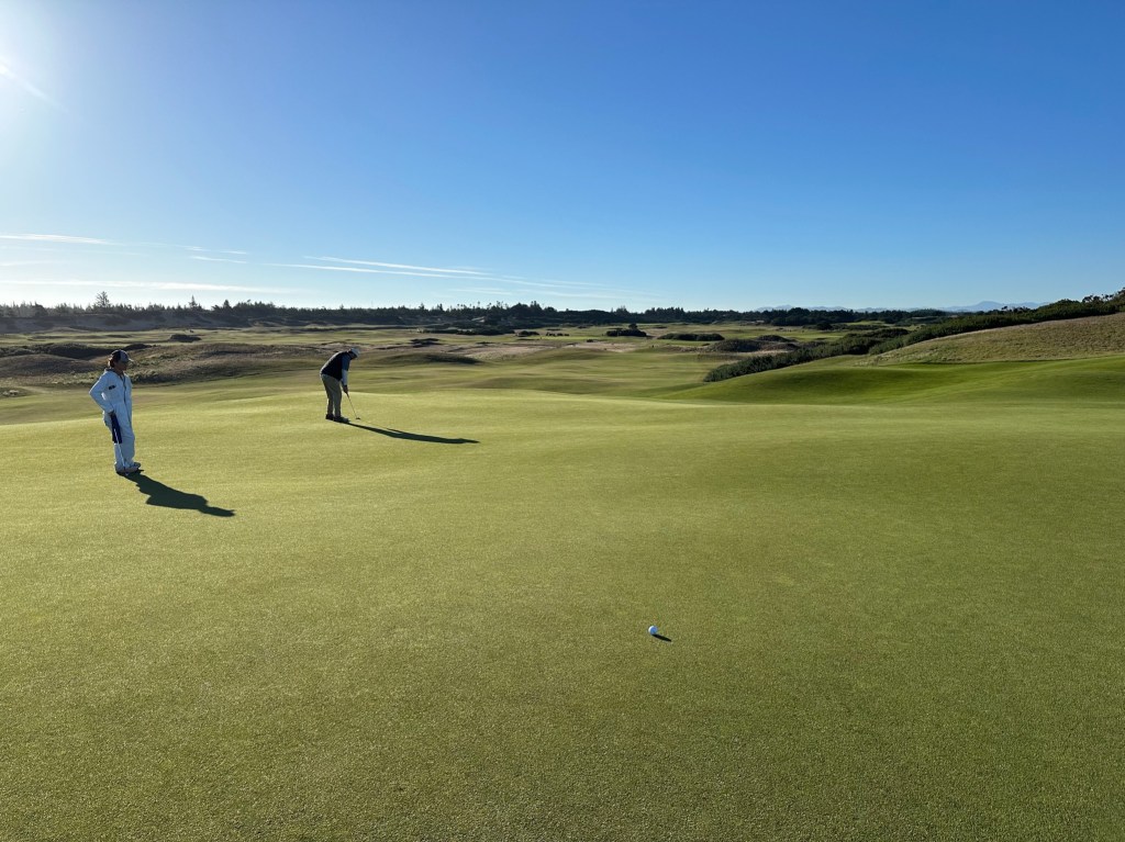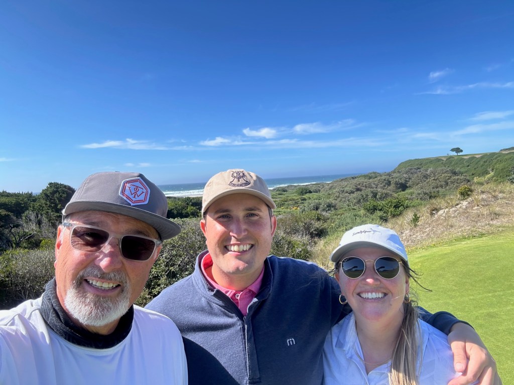 Pacific Dunes felt like a v2 of Bandon Dunes as it was built shortly after Bandon. We got the lottery again by playing alone, probably because it was a late tee time, so just my Dad and I and our caddy. We finished the round right at sunset to get stunning views walking the last five holes from the beach up into the hills. Kaylyn walked alongside us this round to enjoy the views, which were well worth the time.
